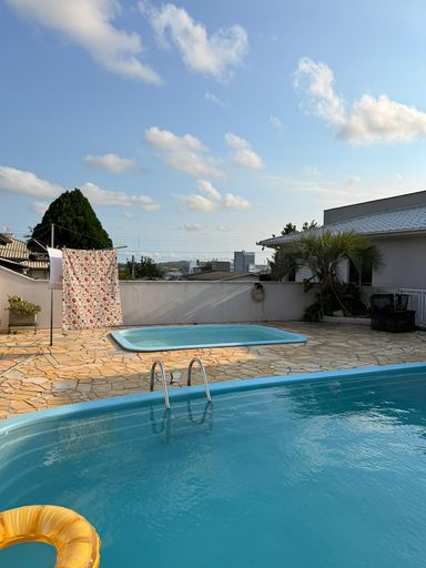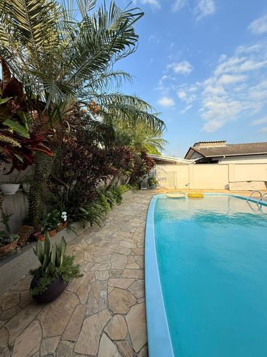 Casa disponível para venda na região da grande Próspera com 3 quartos sendo uma suíte, 180m2 área privativa, sala de tv, sala de estar e sala de apoio, cozinha, área de serviço, duas vagas de garagem, duas piscinas, amplo paisagismo em frente a casa, 500m2 de terreno. Próximo ao Nações shopping .